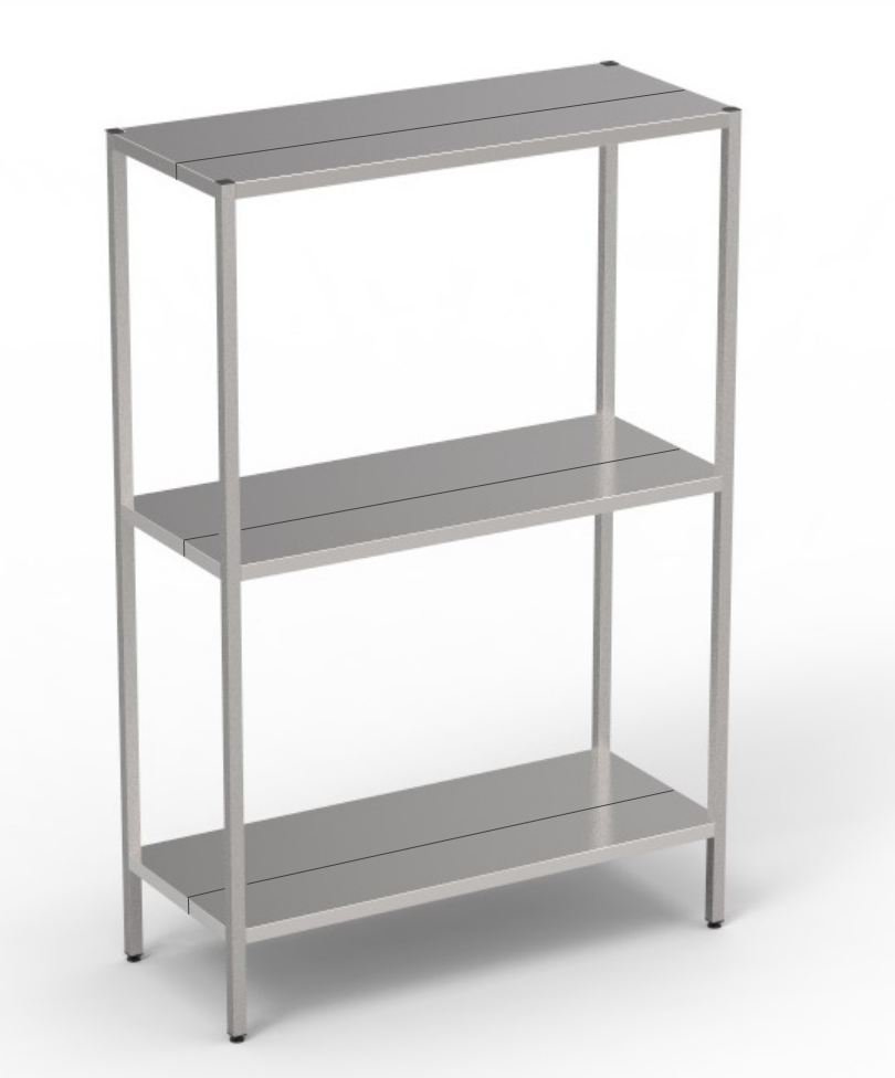 • Полиці виготовлені з нержавіючої сталі з додатковими ребрами жорсткості, що дозволяє витримувати вищі навантаження.
