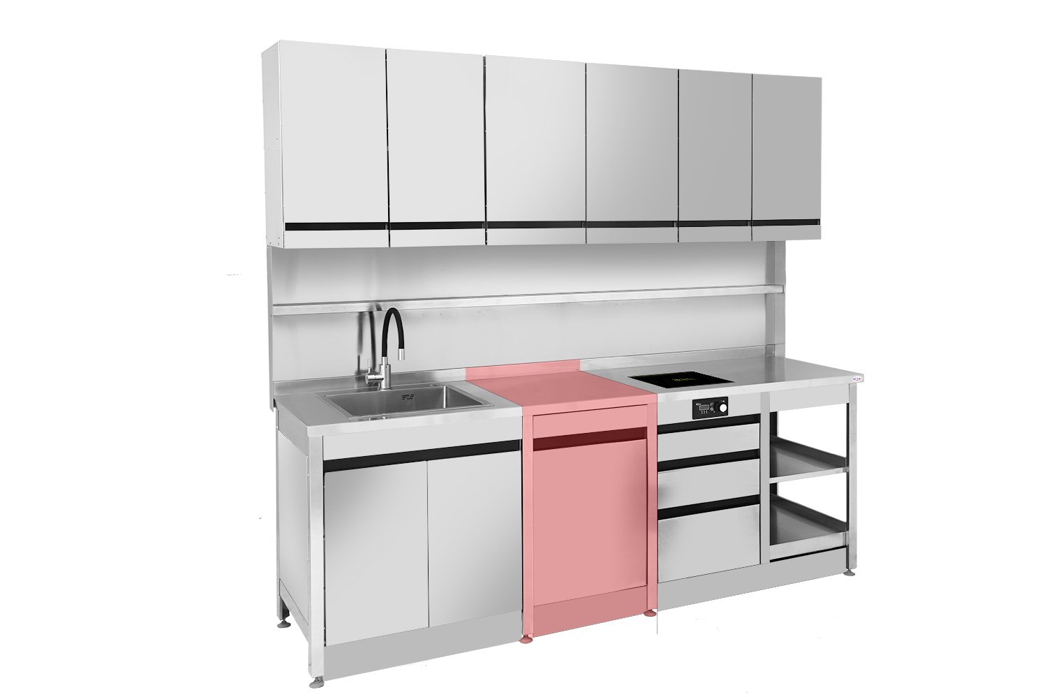 • Кухонний модуль виготовляється з нержавіючої сталі та є елементом кухонних меблів.